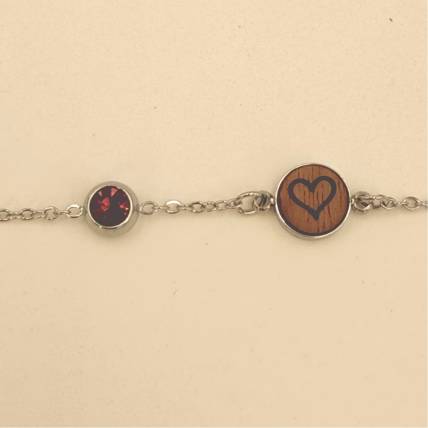 Herzstück jedes Armbands ist die Kombination aus einer kleinen Holzscheibe und einem Geburtsstein. Der Zirkon steht für einen bestimmten Monat – du kannst ihn passend zum Geburtsmonat wählen oder einfach den Stein nehmen, der dich anspricht. Die Übersicht aller Monatssteine findest du in der Galerie.
