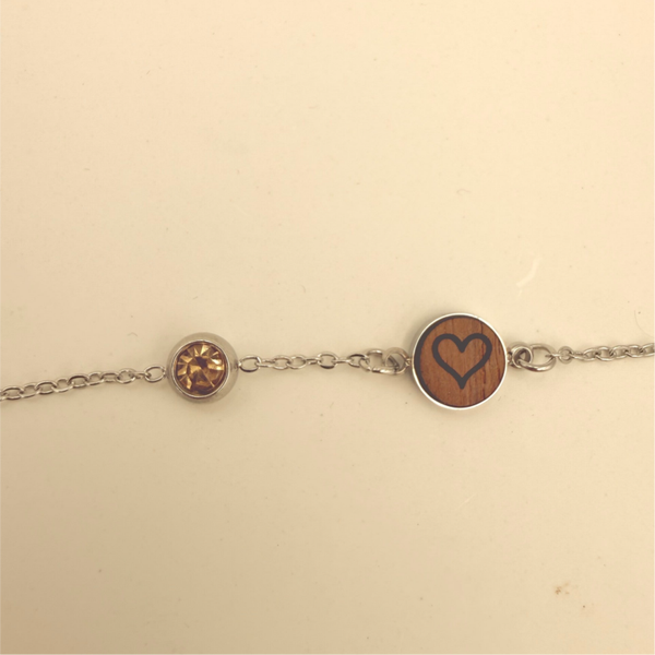 Mit echter Holzscheibe und Geburtsstein (Zirkon) – fest miteinander verbunden