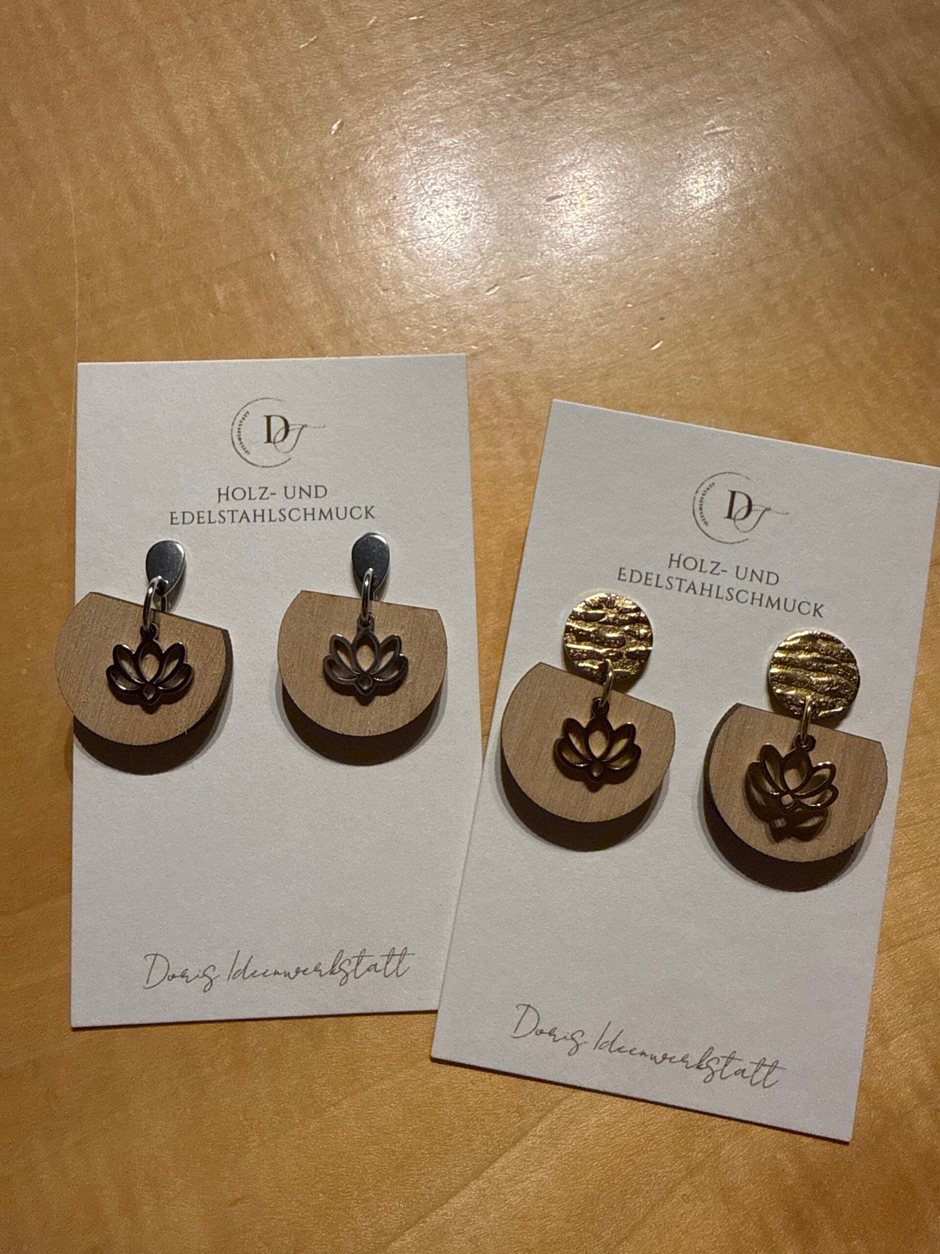 Lina - ruhige Holzohrringe mit Lotusdetail